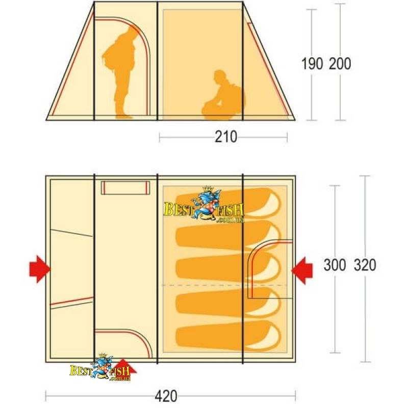 • Внешняя палатка (ДхШхВ), мм: 4200 х 3200 х 2000