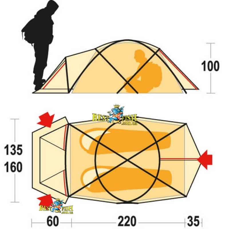 • Внешняя палатка (ДхШхВ), мм: 3150 х 1600 х 1000