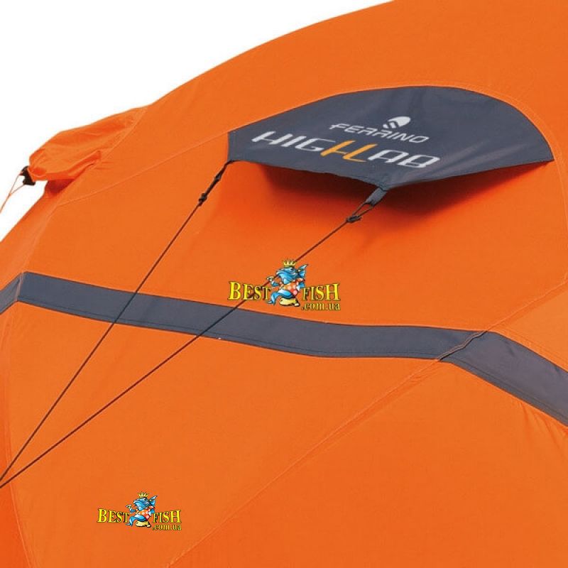 • Штормовые оттяжки для большей надежности крепятся непосредственно к дугам палатки через вентиляционные окна