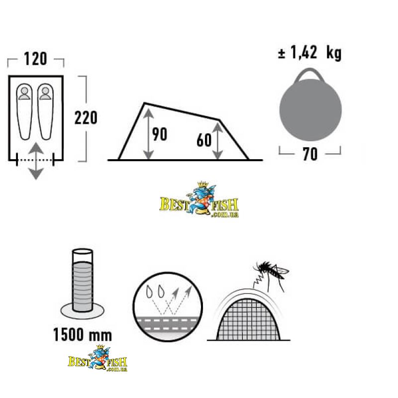 • Габариты внешней палатки (ДхШхВ), мм: 2200x1200x900(600)