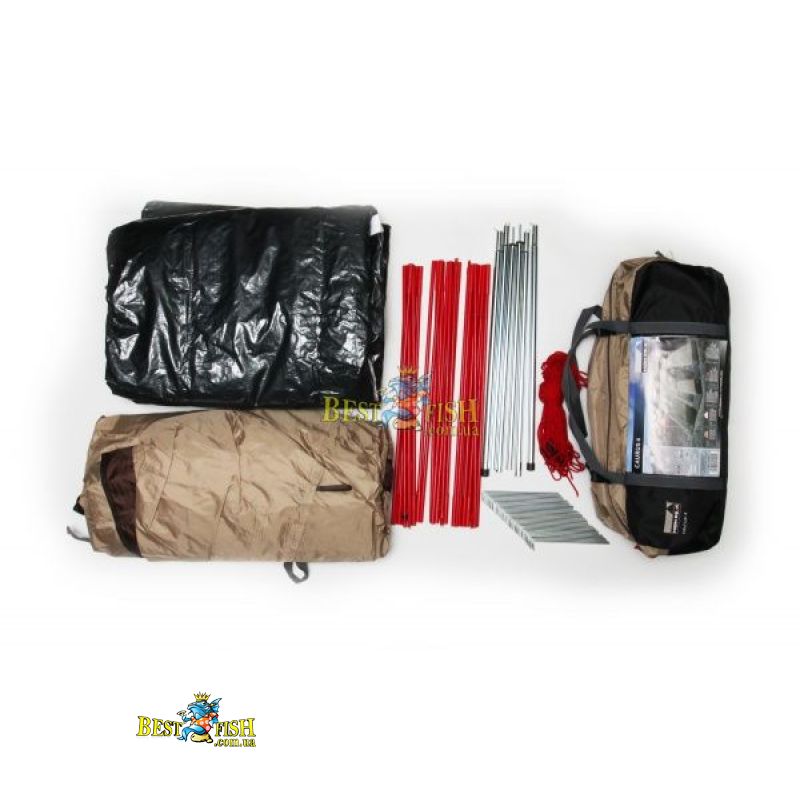 Палатка High Peak Caurus 4 Beige. Кемпинговая 4-ох местная палатка для длительного отдыха, с разделяемым спальным отсеком. Большой тамбур с полом идеально подходит для размещения багажа или организации кемпинговой кухни, а наличие двух входов, позволят использовать её как в базовом лагере, так и для семейного отдыха на природе. Козырек тамбура устанавливается на стальные стойки, москитная сетка на входе в спальное отделение, проклеенные швы тента, вентиляционный клапан обеспечивают необходимый комфорт.