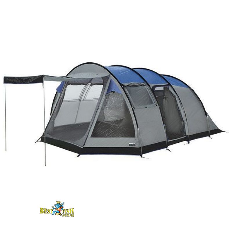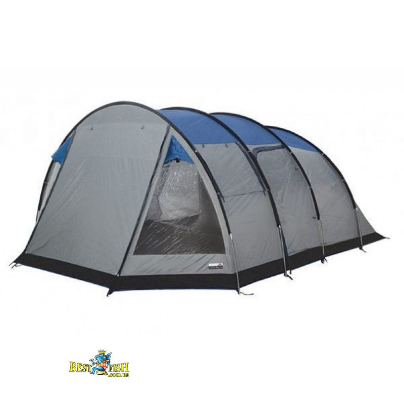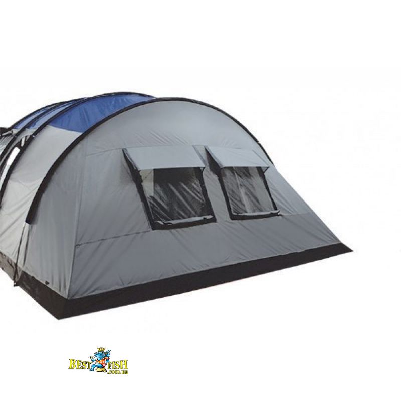 Кемпинговая 5-ти местная палатка для длительного отдыха, с разделяемым спальным отсеком. Просторная гостиная (11 м), большой тамбур с полом идеально подходит для размещения багажа или организации кемпинговой кухни. Благодаря наличию двух входов, позволяет использовать её как в базовом лагере, так и для семейного отдыха на природе. Козырек тамбура устанавливается на стальные стойки, москитная сетка на входе в спальное отделение, проклеенные швы тента, эффективные системы вентиляции "Dual Flow" и "Vario Vent Kontrol" обеспечивают комфортный микроклимат при любых погодных условиях