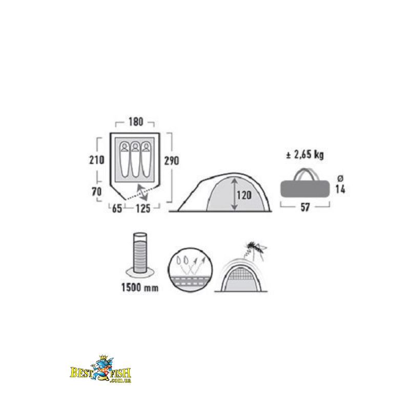 - Вес палатки: 2.65 кг