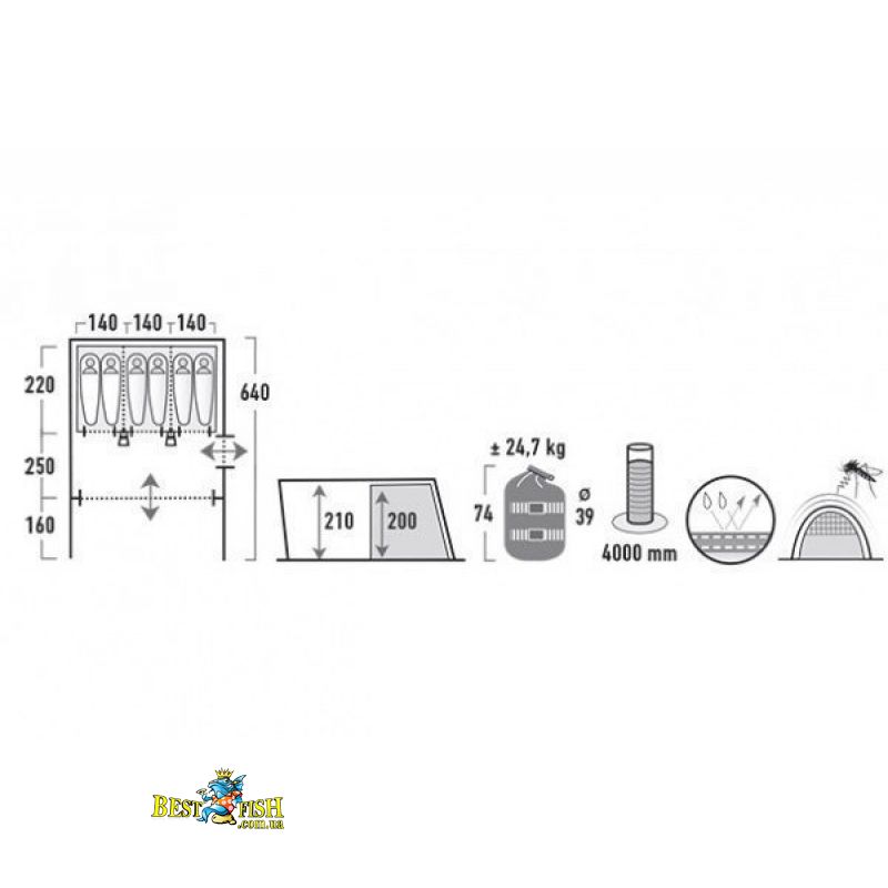 - Вага палатки: 24.7 кг