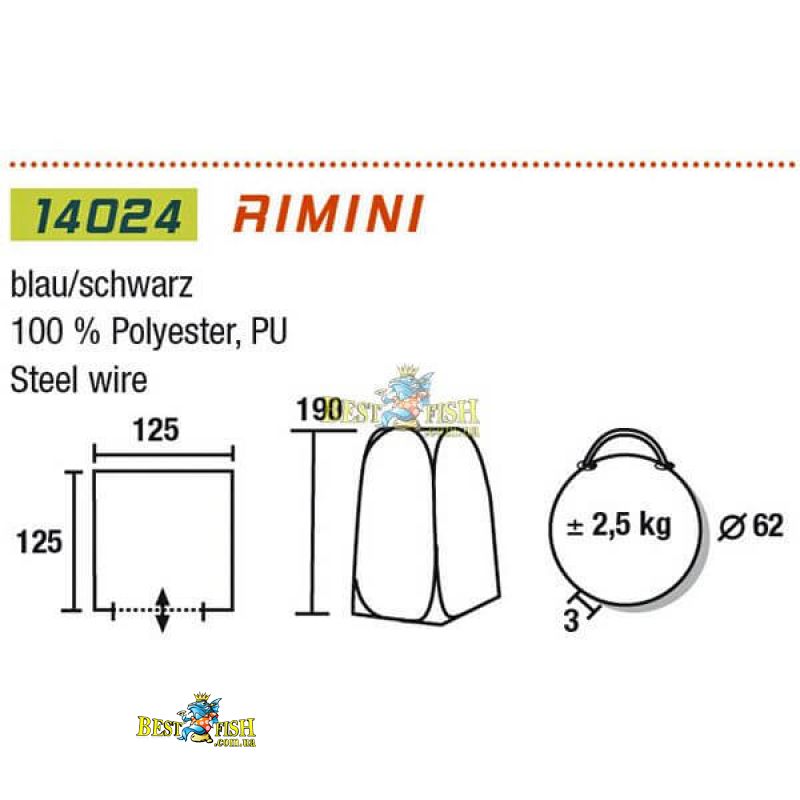 Багатофункціональна намет High Peak Rimini може бути використаний в якості роздягальні, душової кабінки або туалету. Каркас виробу виготовлений з пружинних сталевих дуг. Виріб займає мінімум місця, вхід закривається на двосторонню блискавку, установка тенту не займає багато часу, виконується дуже швидко і легко.