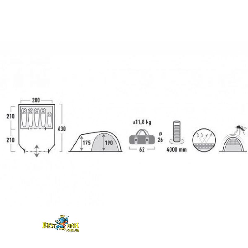 - Габариты внутренней палатки (ДхШхВ), мм: 2100x2800x1900