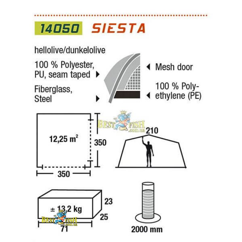 Намет High Peak Siesta Green. Простора багатофункціональна намет - намет. Великі вікна з москітною сіткою і захисною шторкою з усіх боків. Захисний полог по всьому периметру, 2 входи. При закритих вікнах намет відмінно захистить від дощу і вітру. Модель можна використовувати як намет для дачі, літній їдальні, альтанки.