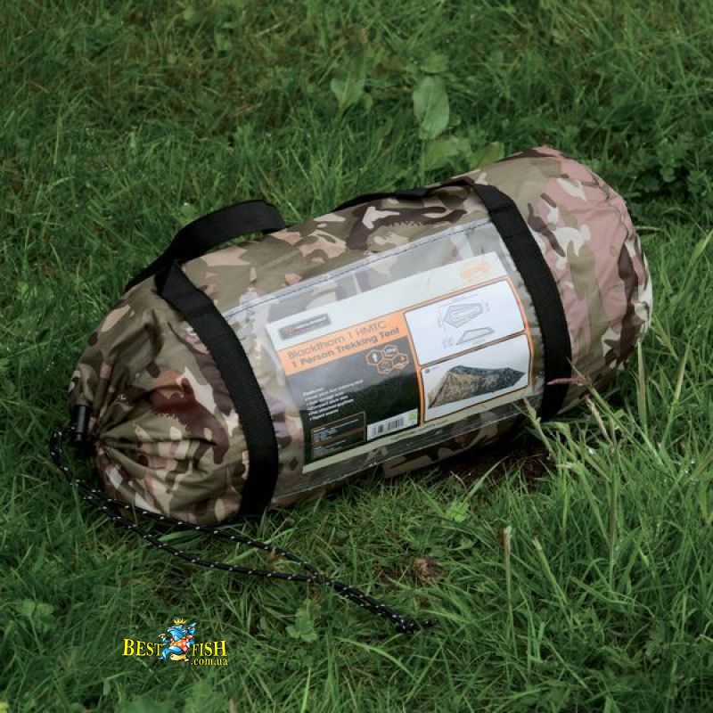 Компактная одноместная палатка Highlander Blackthorn 1, интересна не только тем, кто путешествует в одиночку, но, может быть даже более, рыбакам и охотникам. Выезжая на ночную рыбалку или охоту не всегда есть возможность брать полноразмерную палатку, а Highlander Blackthorn 1 всегда поместится даже в небольшом рюкзаке. Специальная расцветка HMTC (Highlander Multi Terrain Camo) - это камуфляжный узор, разработанный эксклюзивно для компании Highlander, адаптированный для маскировки в большинстве ландшафтов при любом освещении. Не смотря на невысокую цену и компактные размеры, эта двухслойная палатка с качественным полиуретановым покрытием внешнего тента способна защитить от дождя средней интенсивности не только хозяина, но и достаточно объемный рюкзак, обувь и другие личные вещи. Все это можно разместить либо в тамбуре, либо под навесом внешнего тента с обратной стороны от входа. Предварительно изогнутые дуги увеличивают внутреннее пространство палатки.