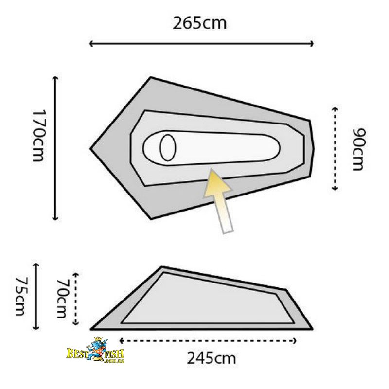 - Внешняя палатка (ДхШхВ), мм: 2650 х 1700 х 750
