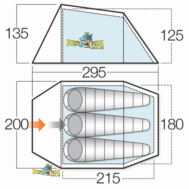 Внешняя палатка (ДхШхВ), мм: 2950 х 2000 х 1350
