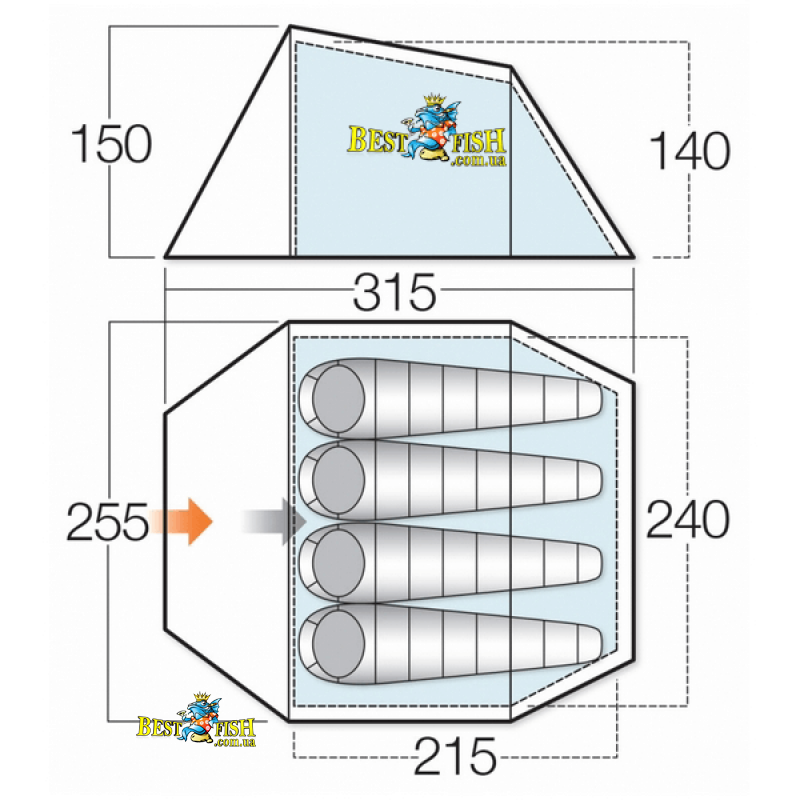 Внешняя палатка (ДхШхВ), мм: 3150 х 2550 х 1500