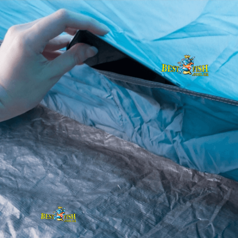 - Все швы дна и тента палатки проклеены специальной лентой, гарантируя при этом защиту от проникновения влаги в дождливую погоду.