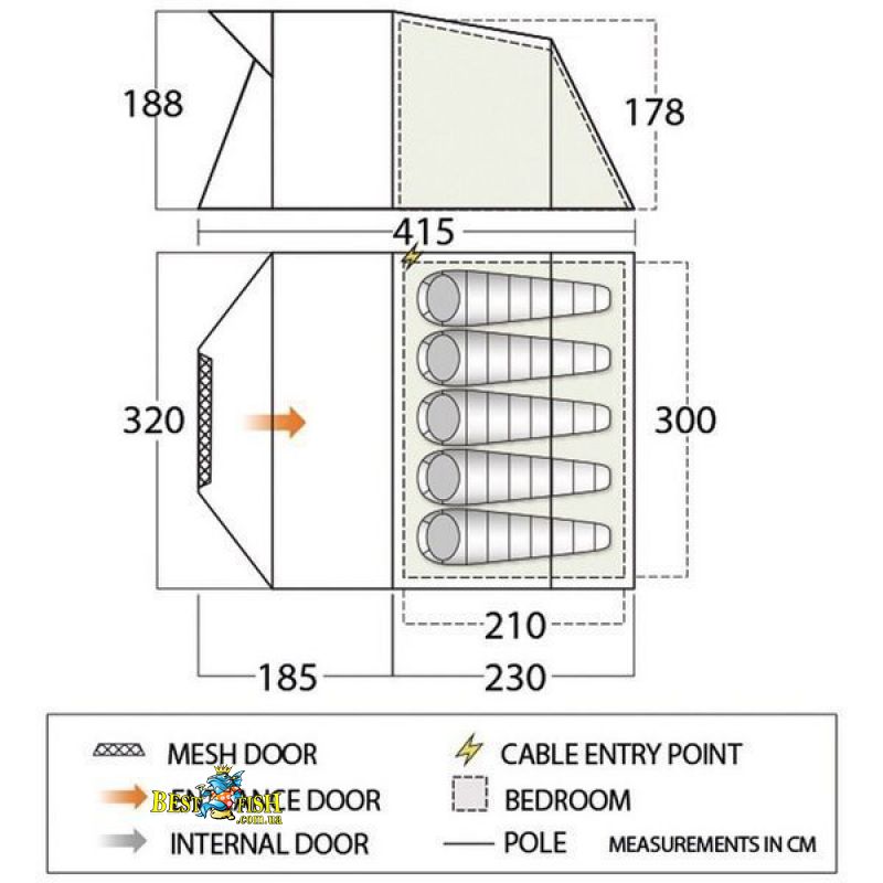 - Внешняя палатка (ДхШхВ), мм: 4150 х 3200 х 1880