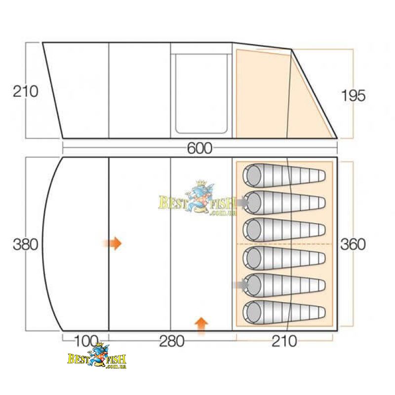 - Внутренняя палатка (ДхШхВ), мм: 2100 х 3600 х 1950