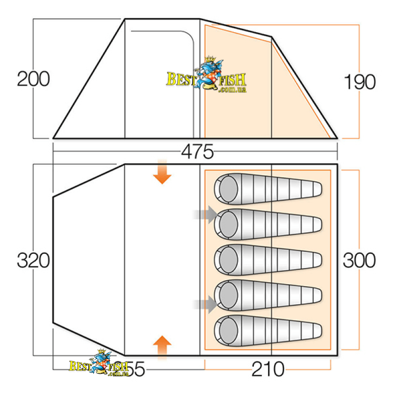 Внешняя палатка (ДхШхВ), мм: 4750 х 3200 х 2000