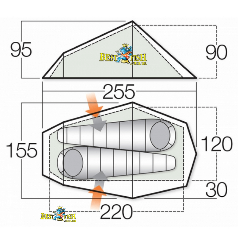 Внутренняя палатка (ДхШхВ), мм: 2200 х 1200 х 900
