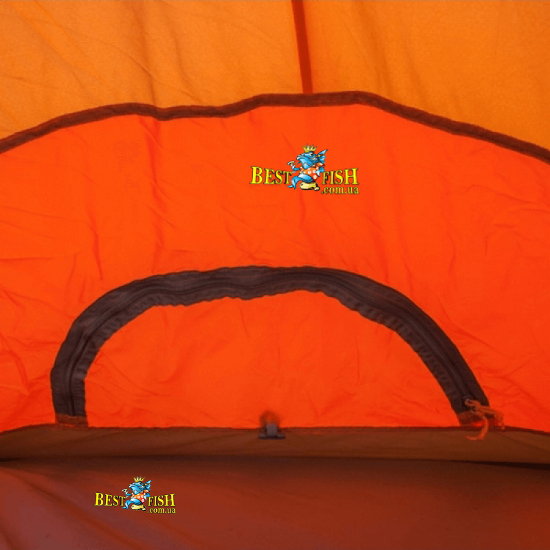 - Двери палатки оснащены специальными люверсами (отверстиями) для устройства навеса с помощью телескопических треккинговых палок.