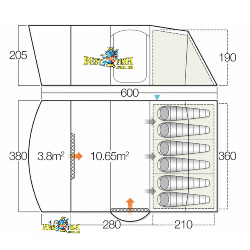Внешняя палатка (ДхШхВ), мм: 6000 х 3800 х 2050