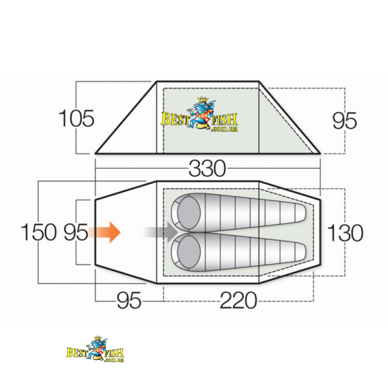 Внешняя палатка (ДхШхВ), мм: 3300 х 1500 х 1050