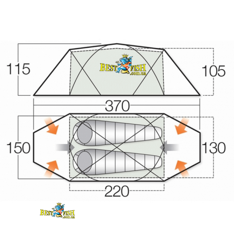 Внешняя палатка (ДхШхВ), мм: 3700 х 1500 х 1150