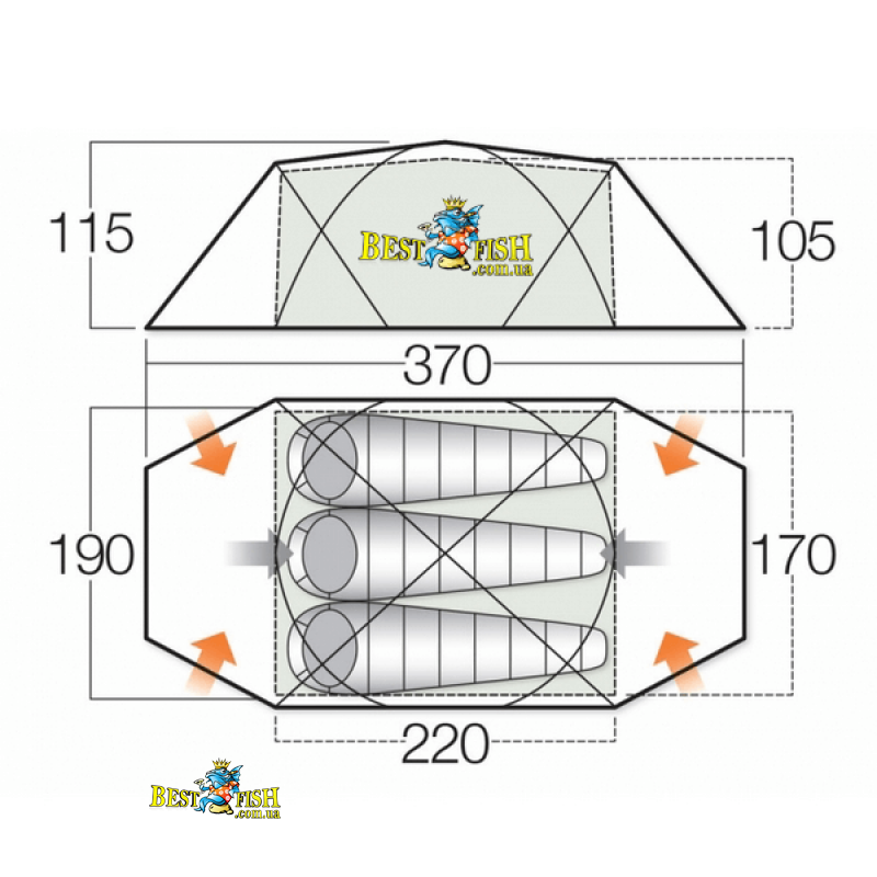 Внешняя палатка (ДхШхВ), мм: 3700 х 1900 х 1150