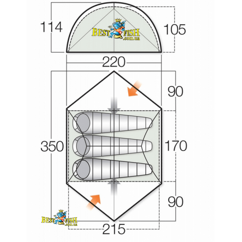 Внешняя палатка (ДхШхВ), мм: 2200 х 3500 х 1140