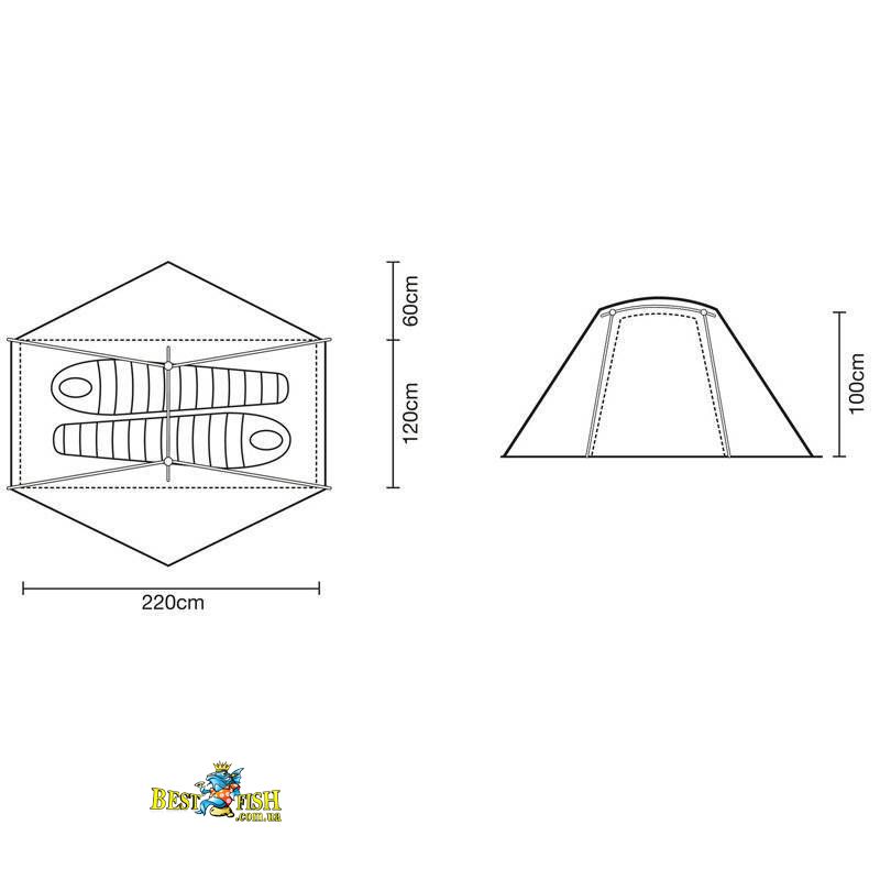 - Хорошая вентилируемость: верх внутренней палатки выполнен из сетки.