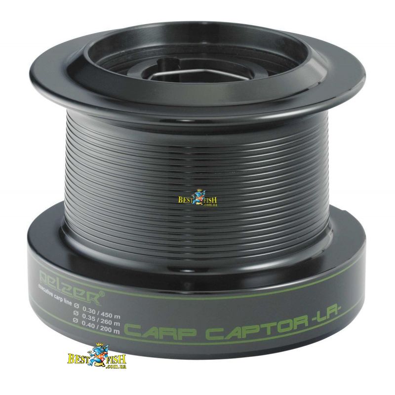 Безінерційна котушка Pelzer Carp Captor LR 6000 - aбсолютно нова котушка для дальних закидів (long cast) марки Pelzer. Червячный осцилляционный механізм укладывает ідеально лесу на алюмінієву шпулю, обработанную на CNC станке. Carp Captor LR - экстремально крупная котушка! Тем не менш удалось выдержать низкий вага за рахунок корпуса з АБС- нейлона.В большом корпусе достатньо места для сверхкрупного механізму,який призначений для экстремальных нагрузок.Гальмо регулируется дуже точно та може быть открыт або закрыт одним поворотом гальмівний кнопки. Плавний ход та хороший ухват кулачка з ЭВА складывающейся ручки, обработаной на CNC станке.