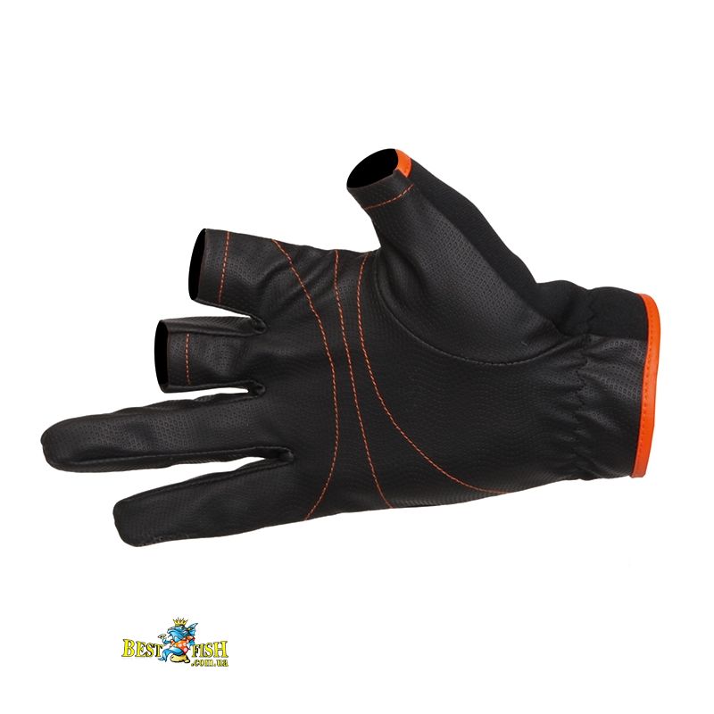 Рибальські рукавички з трьома відкритими пальцями розроблені для зручності лову риби спінінгом. Рукавички не тільки захищають кисті рук від механічних впливів з вудилищем, але і зігрівають руки рибалки в вітряну теплу і прохолодну погоду. Три відкритих пальця вільні для роботи, інші залишаються в теплі. Рукавички зшиті з водозахисного флісу, вони еластичні - щільно облягають кисті рук і добре утримуються на них. Додаткове кріплення на зап'ясті - текстильні застібки Velcro ( «липучки»). Три розміру дозволяють підібрати рукавички ідеально по руці.