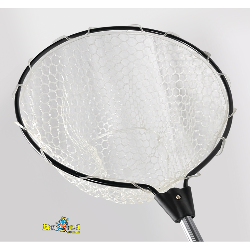 За доступними характеристиками, ця модифікація має діаметр голови 45 см і телескопічне руків’я з робочою довжиною від 110 до 180 см. Такий діапазон робить підсак універсальнішим: у складенішому форматі він зручний для транспортування, а при потребі дає додатковий винос під час приймання риби з високого берега, урізу води або з човна. М’яка прогумована сітка допомагає зменшити заплутування гачків і делікатніше поводиться з рибою, що важливо як для спортивного, так і для звичайного рибальського використання.