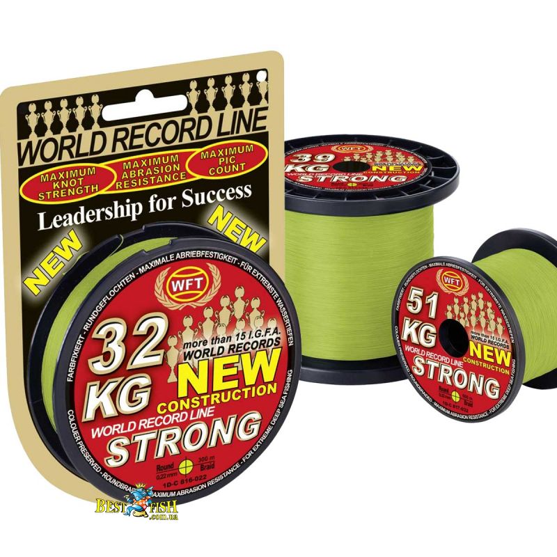 Шнури WFT серії KG Strong зайняли міцні позиції на світовому ринку, адже саме на них поставлено більше 15 світових рекордів в IGFA Знаменитий чеський рибалка Якуб Вагнер використовував ці шнури при зйомках фільму «Мисливець на прісноводних гігантів» для каналу National Geographic і навіть поставив кілька світових рекордів саме з ним. Один з останніх світових рекордів IGFA в липні 2015 року поставив Dennis Verreet на шнур WFT Strong 51 KG піймавши желтоперого тунця вагою 230 фунтів (104 кг).