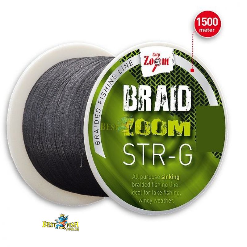 Плетений шнур Carp Zoom Braid Zoom STR-G braided line 0,10mm 1500m 2,7 кг темно-сірий