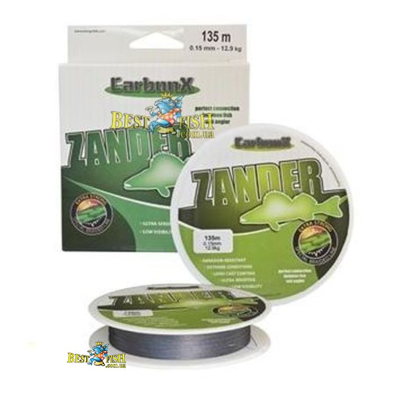 Плетений шнур Сarbon X ZANDER 0,15mm (135M) 12,9кг сірий, зносостійкий, має високу міцність і не розтягується, легко виводити велику рибу в різних умовах лову.