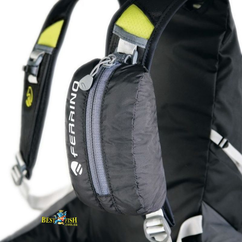 Підсумок Ferrino X-Track Case Black представлят собою легкий додаткова кишеня з тканини з водовідштовхувальним просоченням, який прикріплюється до шлейки, або в інший зручний місце рюкзака. Дана модель насамперед оптимізована для використання з серією спортивних рюкзаків Ferrino X-TRACK, проте завдяки універсальному кріпленню підходить і до більшості інших спортивних, туристичних і міських рюкзаків, що мають петлю на шлейках. Кріплення подсумка складається з вертикальної петлі з подвійною фіксацією за допомогою текстильних застібок Velcro.