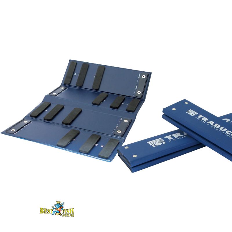 Поводочніца Trabucco Hooklenght Wallet 38 см має більш подовжену форму, що відзначили багато рибалок, які вважають за краще тримати свої гачки в повному порядку, повної захисту від попадання води. Варто зазначити, що бренд Trabucco представляє італійського якісного і недорогого виробника, тому за невеликі гроші можна набути досить якісну продукцію. Даная модель має форму книжки, що вкрай зручно. Для гачків тут додані спеціальні міцні губки. Чотири області, на які розділена поводочніца Trabucco, дозволяють зберігати повідці різної довжини.