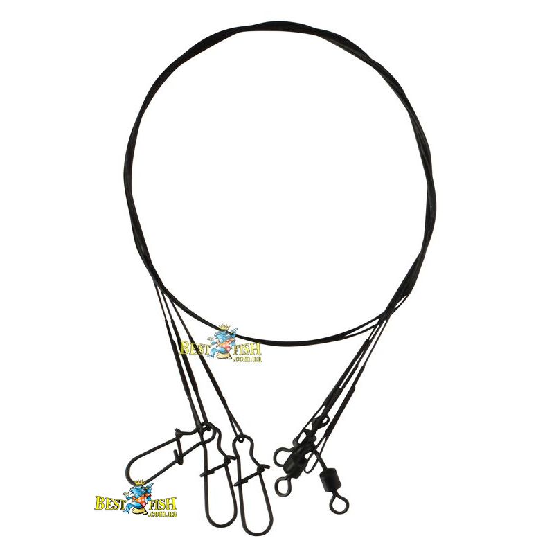 Поводок Savage Gear Lure Trace 40cm 0.50mm 13kg Egg Swiwel/Needle Snap 3pcs очень прочный с 7 тонких стальных нержавеющих проволок имеет черное покрытие.