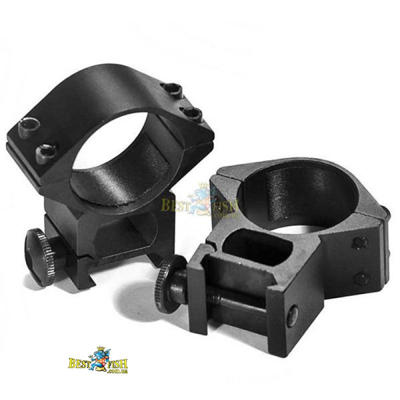 В комплектацию прицела включены 30-мм крепежные кольца усиленной конструкции с четырьмя зажимными и стопорным винтами. Кольца имеют креплениее на планку Weaver/Picatinny.