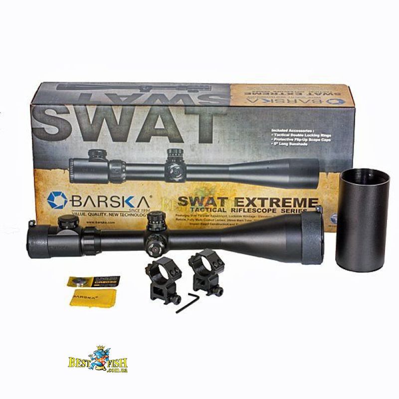 Прицелы премиум класса Barska SWAT разработаны специально для прицельной стрельбы на дальние расстояния из пневматического и огнестрельного оружия. Barska SWAT Extreme 6-24x60 SF (IR Mil-Dot) сочетает в себе высокое качество оптики, надежную конструкцию, точность и простоту использования. Цельный корпус прицела изготовлен из лёгкого и прочного авиационного сплава алюминия.