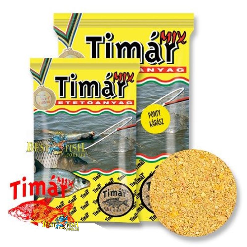 Прикормка TIMAR MIX СARP-KARASZ yellow жовтий 1kg. Дуже ароматна якісна угорська підгодовування, яка містить багато всяких сумішей. Кукурудзяні культури, насіння олійних культур і трав, в досконалої гармонії лежить в успіху цих сумішей! Рекомендується для лову коропа і карася.