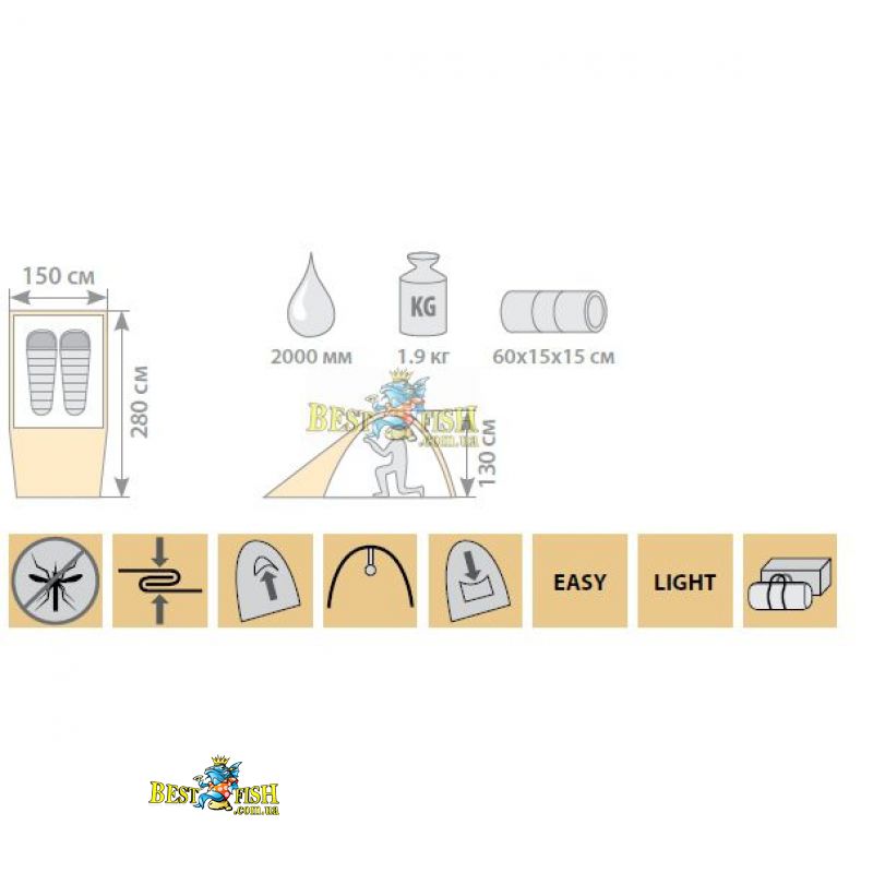 Материал наружной палатки / влагостойкость (мм H2O) Nylon 190T 75d PU / 2000