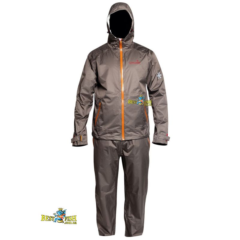 Костюм демісезонний Norfin Pro LIGHT BEIGE. Водонепроникний костюм з капюшоном. Куртка має подовжену спинку, кишені з влагозащитной застібкою-блискавкою і стягуваний низ, що забезпечує найкращий захист від опадів і вітру. Матеріал костюма - легка і тонка мембранна тканина. Всі шви проклеєні. У складеному вигляді костюм займає мінімум місця.