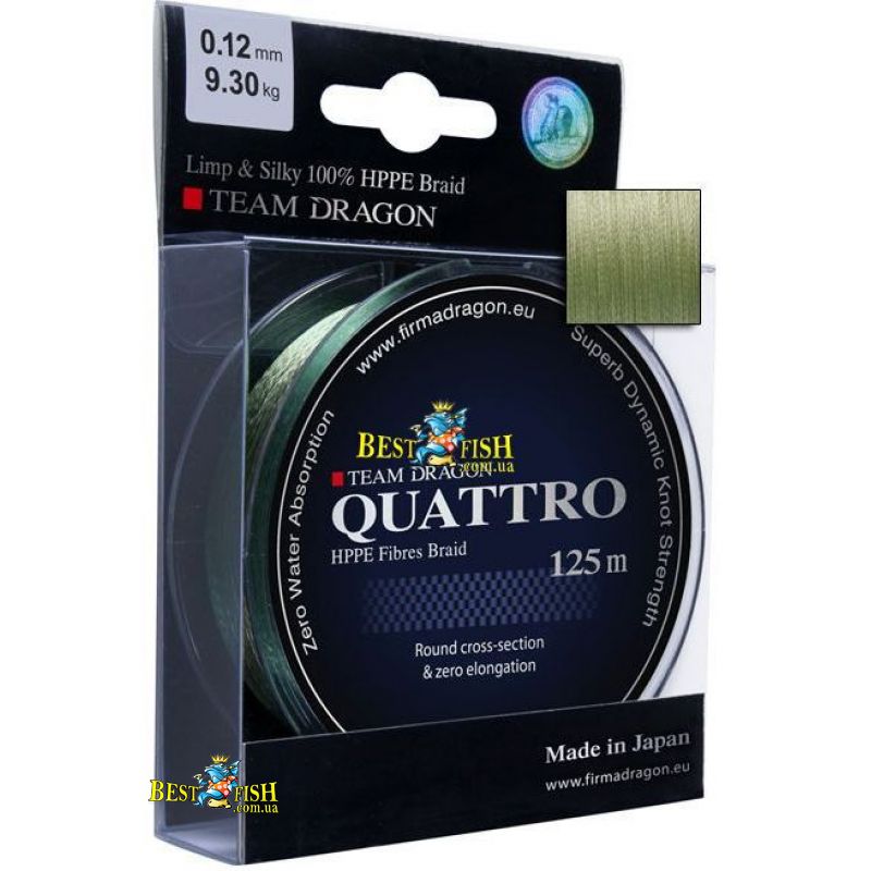 Шнур Dragon Quattro зелений 0,18 15,85кг 125м