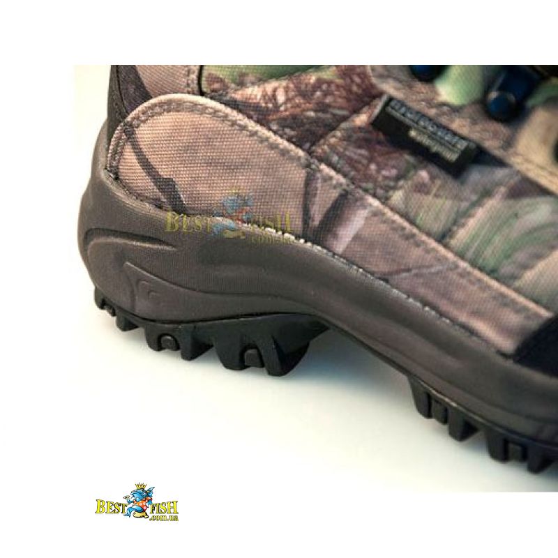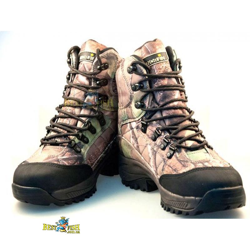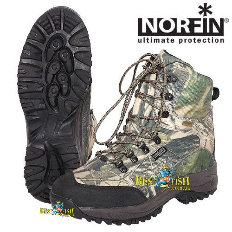 Черевики Norfin RANGER. Високі черевики, виготовлені з «дихаючого» мембранного матеріалу з камуфляжній забарвленням «зелений очерет». Тепла і комфортна взуття призначене для риболовлі, полювання і активного відпочинку на природі. Взуття має невеликий шар утеплювача, тому вона рекомендована для сирої погоди і міжсезоння. Багатошарова підошва забезпечує найкращий комфорт при носінні в прохолодну погоду - середня частина підошви виготовлена з матеріалу EVA, що забезпечує взуття легкість і збереження тепла ступень ніг. Нижня частина підошви виготовлена з міцної гуми, що має глибокий протектор, для кращого зчеплення зі слизькою землею.