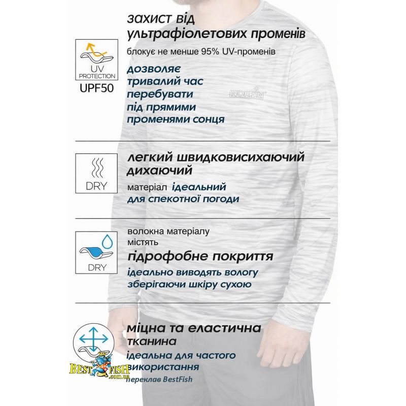 Реглан Norfin Sun Pro Deck Mesh розроблений для теплої та сонячної погоди, коли потрібні одночасно захист від ультрафіолету, легкість і покращена вентиляція. Модель виконана з еластичного дихаючого матеріалу, який швидко сохне, добре відводить вологу та допомагає зберігати відчуття сухості навіть під час активного руху. Завдяки рівню захисту UPF 50+ тканина зменшує вплив сонячних променів, тому реглан добре підходить для риболовлі, полювання, туризму та прогулянок у спеку. Сітчасті вставки на спині та рукавах покращують циркуляцію повітря і роблять носіння ще комфортнішим упродовж усього дня. Модель має зручний крій, не сковує рухів і витримує регулярне використання в польових умовах.