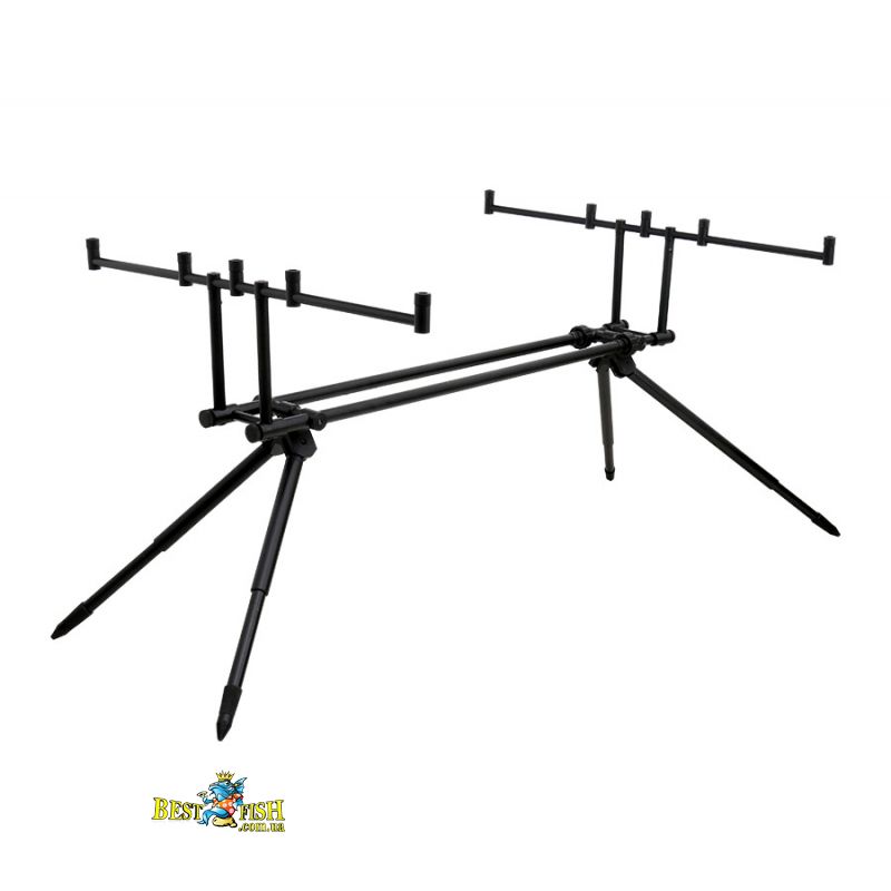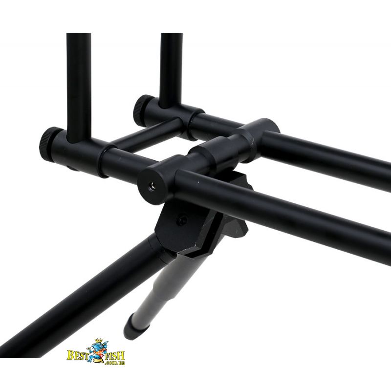 Цей рід-під - прекрасне поєднання функціональності і чудового дизайну. Всі деталі, включаючи гвинти, шарніри і з'єднання, виконані з алюмінію з покриттям кольору Gun Smoke. Пластик в конструкції відсутній, що збільшує довговічність род-поду. Він компактний в складеному вигляді, дуже швидко приводиться в робочий стан. Завдяки можливості установки ніг під різними кутами розширюється можливість регулювання нахилу всього род-поду, цьому сприяє і різна довжина двох пар ніг. Їх довжина в висунутому положенні фіксується поворотом нижнього коліна, завдяки чому ця операція займає лічені секунди. Загострені наконечники сприяють надійної фіксації ніг на різних поверхнях. Довжина станини род-поду також регулюється. Фіксується вона двома цанговими зажимами за допомогою гайок, які легко затягуються від руки. Буз-бари мають різну довжину. Головки з різьбленням рухаються по буз-бару, дозволяючи оптимально розташувати вудлища (для цієї операції потрібно ключ-шестигранник). Можна зняти одну з головок, переобладнавши род-під для кріплення трьох вудлищ, замість чотирьох. Головки забезпечені контргайками для більш надійного кріплення сигналізаторів і власників вудилищ. Поставляється в міцному захисному чохлі, що полегшує транспортування і зберігання.