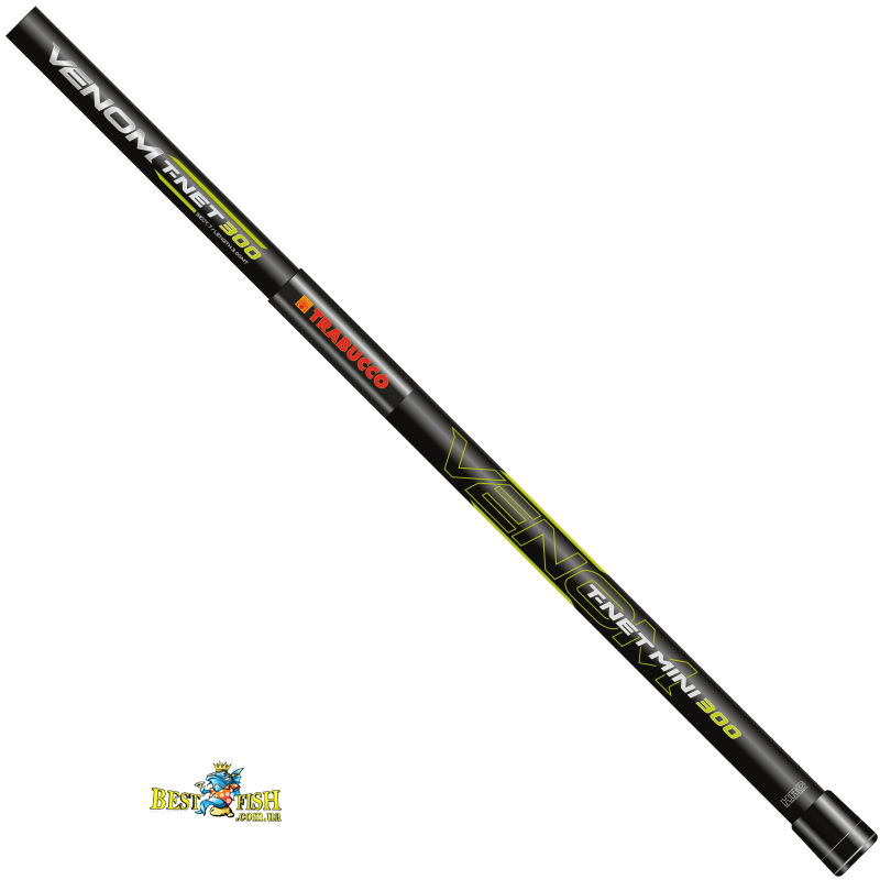 Модель виготовлена з карбонового композиту й доповнена низкою технічних деталей, характерних для більш продуманих серій Trabucco. Серед них — латунна універсальна різьба для встановлення голови підсака, захисне нижнє алюмінієве кільце з гумовим амортизувальним елементом і рукоятка з покриттям Sensi Touch, яке покращує хват. Конструкція складається з семи секцій, тому руків’я компактно складається й водночас дозволяє дістати рибу у більшості стандартних берегових умов.