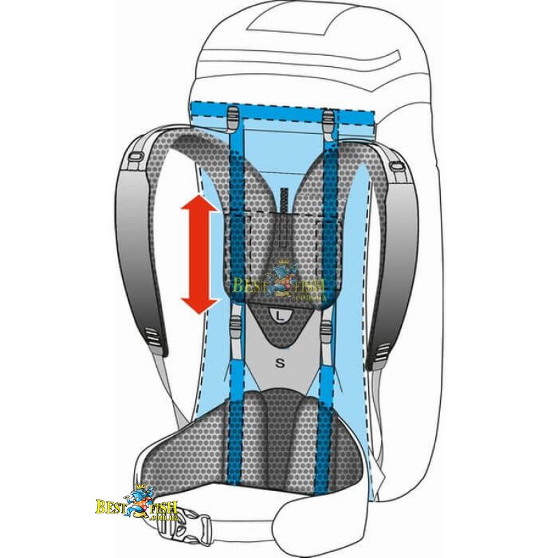 Double Ergo Adjustment Back - подвесная система с бесступенчатой сменой высоты подвеса рюкзака, позволяющая легко и быстро изменять, точно и надежно фиксировать высоту подвеса рюкзака. В качестве каркаса использована П-образная алюминиевая пластина и пластиковая панель. Вентиляция спинки осуществляется с помощью широкого Y-образного канала, сформированного мягкими объемными пенополиуретановыми валиками, обшитыми дышащей сетчатой тканью.