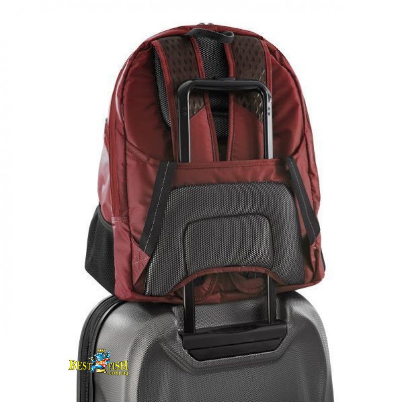 Для удобства транспортировки рюкзака, конструкцией TechPac предусмотрена возможность переноски самого рюкзака непосредственно на выдвижной телескопической ручке чемодана или сумки. Для этого, в спинке рюкзака расположен специальный проем, продев через который ручку чемодана или сумки, рюкзак надежно будет зафиксирован.