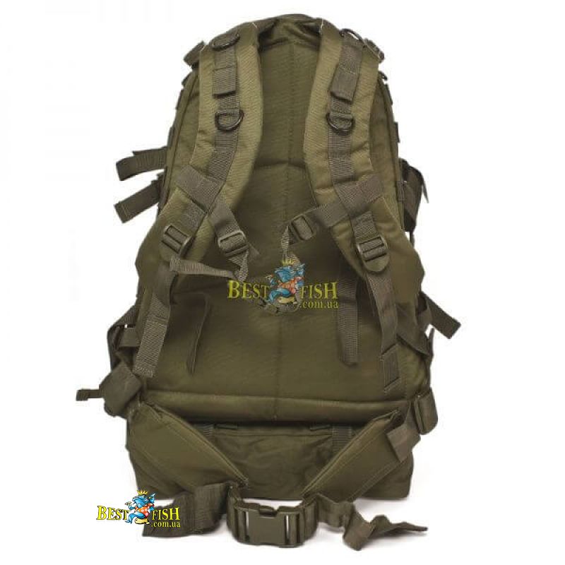 - Система «Molle» по стандартам NATO (25х35 мм) для навеса дополнительного оборудования расположена на фасадной части и по бокам рюкзака.