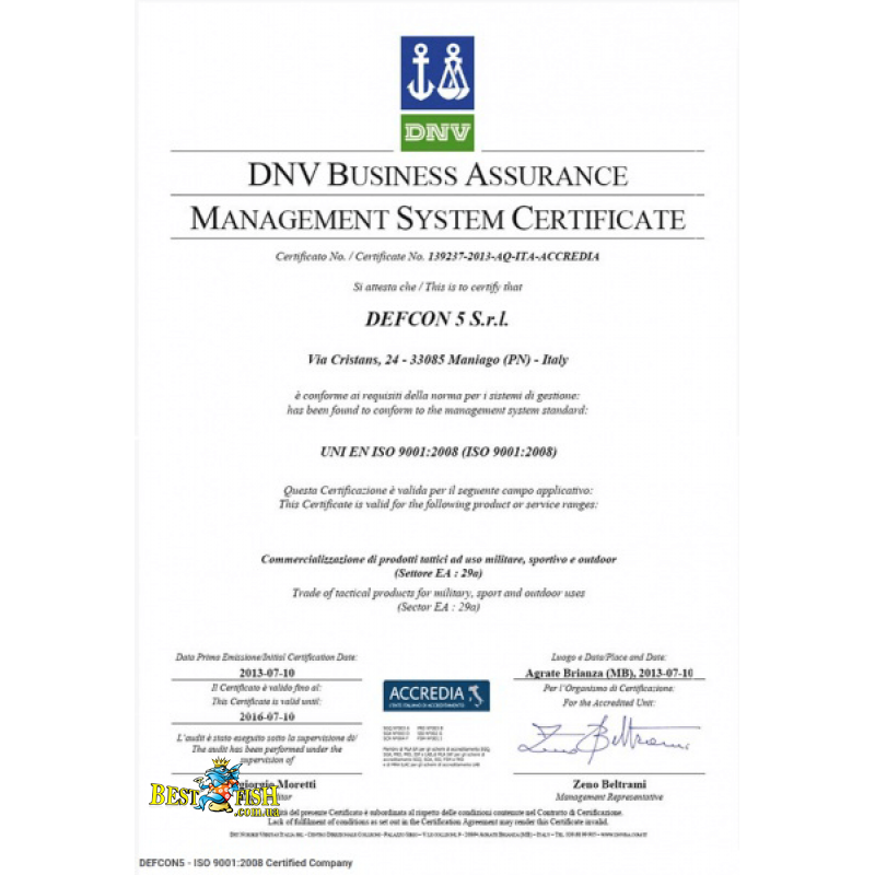 Компания DEFCON 5 основана опытными членами военного бизнес сектора основным направлением которой является производство продукции военного назначения. Продукции DEFCON 5 ® присвоен специальный код «NATO CAGE CODE AG427» который подтверждает право авторизированного дилера на поставку военного снаряжения в НАТО и ООН.